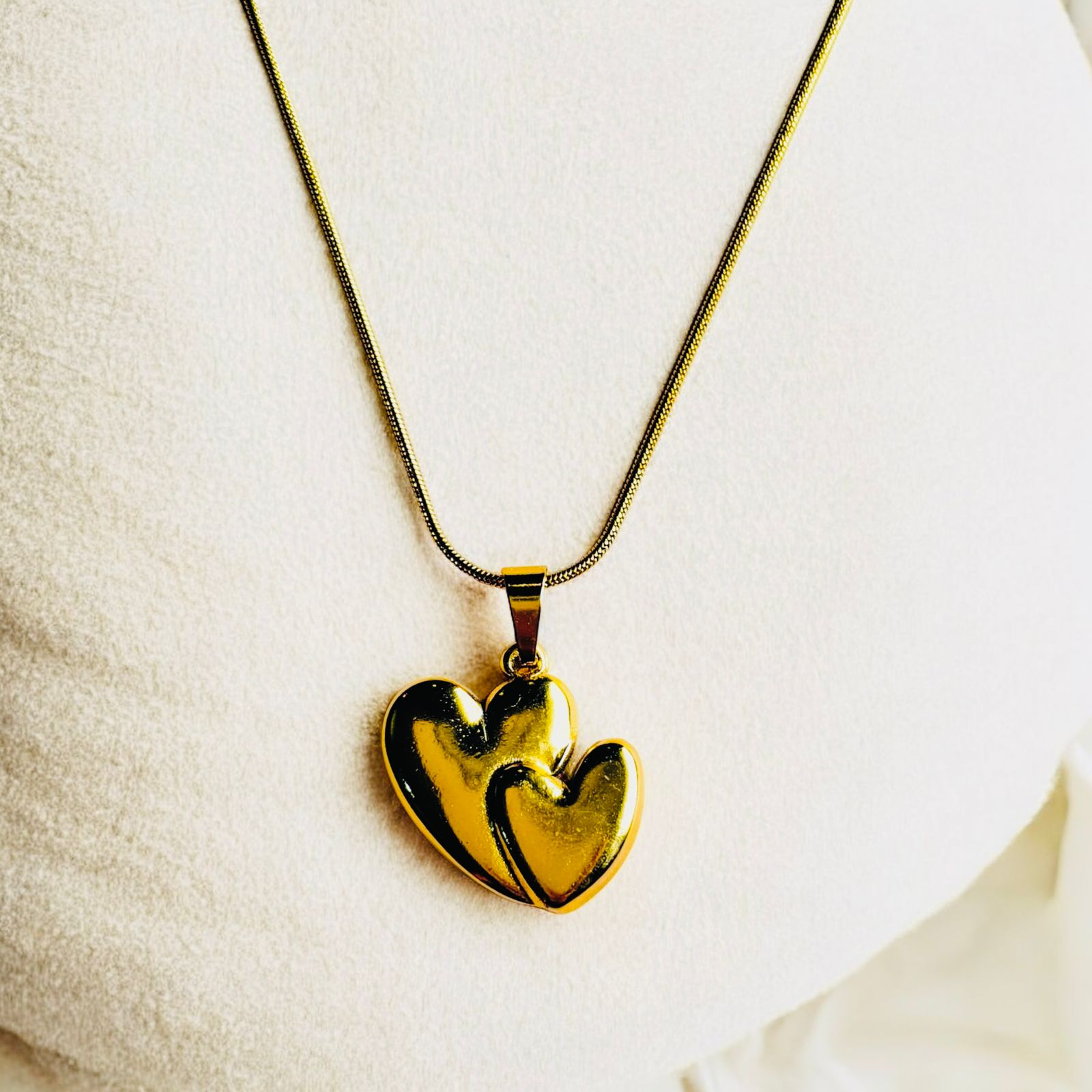 Two hearts, one bond. This minimal yet meaningful necklace features twin heart charms intertwined on a dainty gold chain — a timeless symbol of love, connection, and closeness. Crafted to be anti-tarnish, sweat-proof, and hypoallergenic, it's perfect for everyday wear or gifting someone close to your heart.
