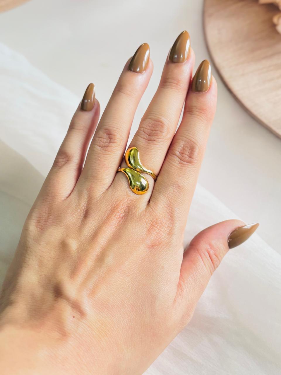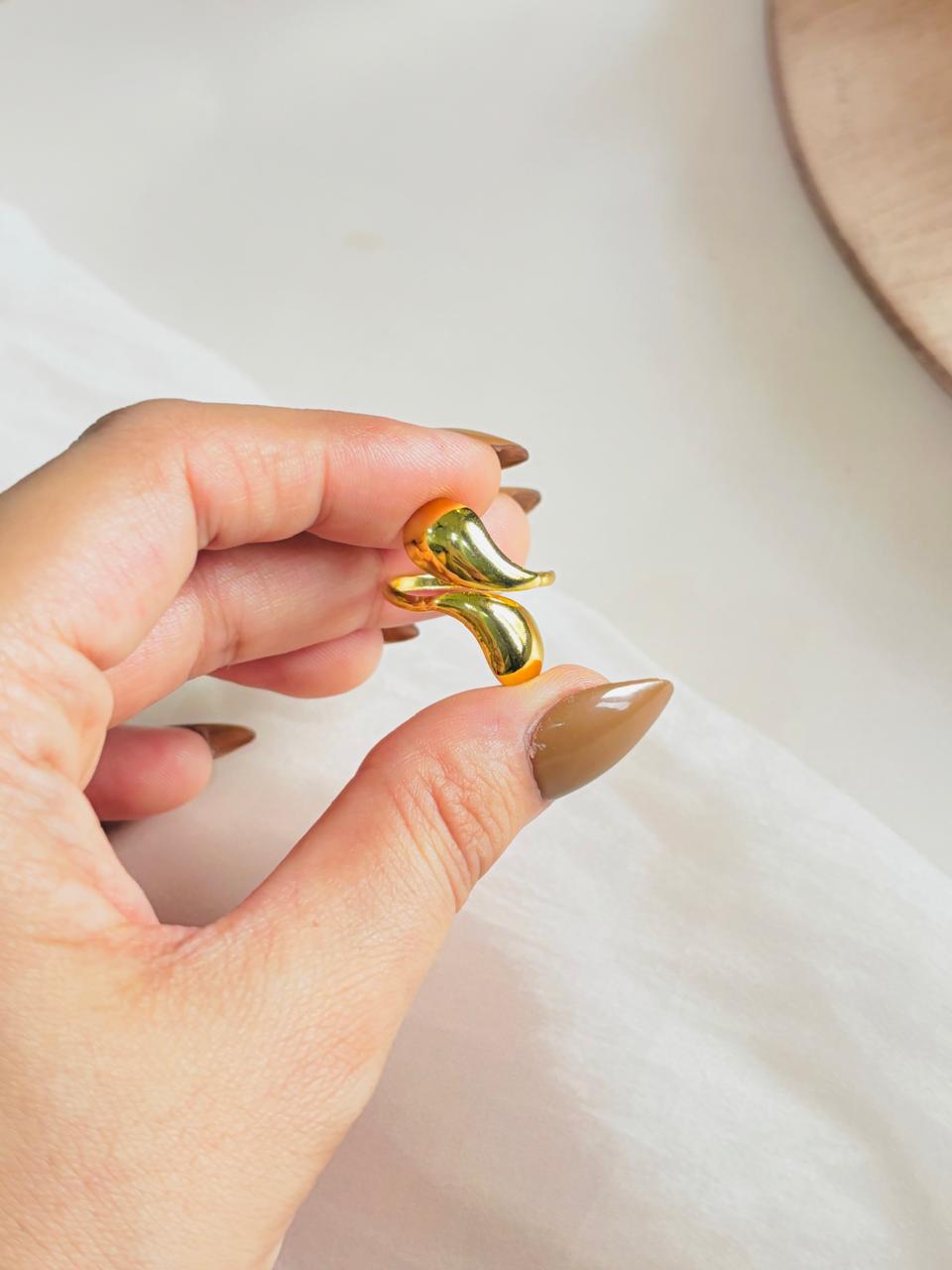 Two fluid petal-like curves meet in a wrap-around embrace. A modern, minimal piece perfect for everyday wear and effortless elegance.