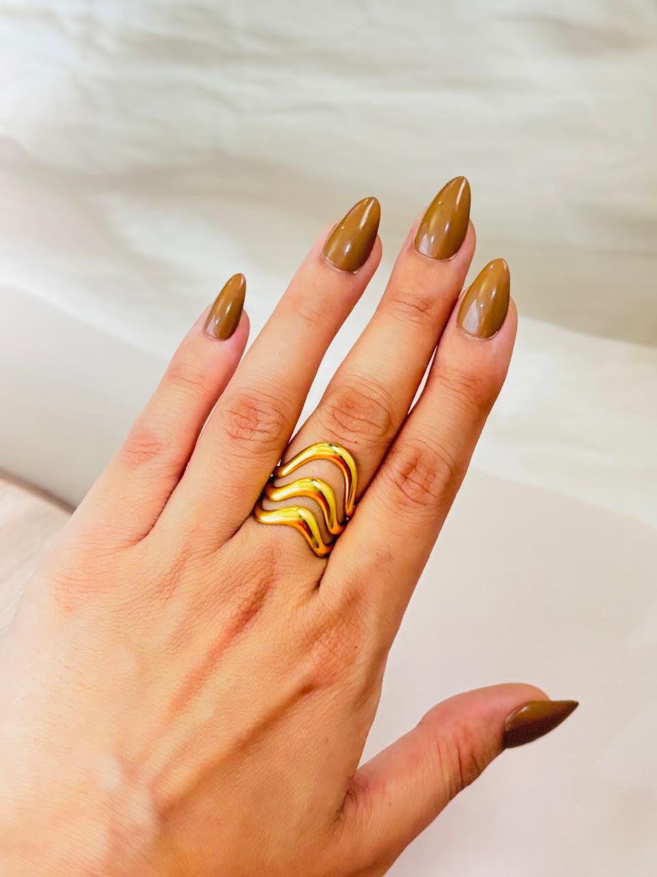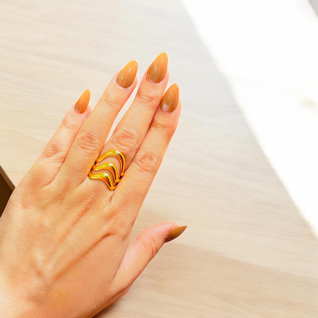 Make a statement that melts hearts with the Golden Drip Ring — a bold, fluid design that looks like molten gold flowing with attitude. Featuring a glossy anti-tarnish finish and adjustable fit, this ring adds edge and elegance to any look.