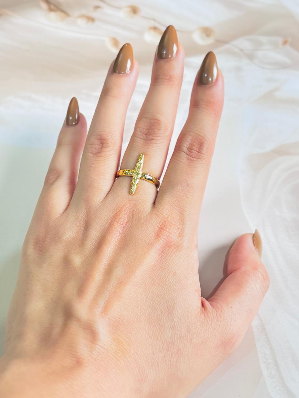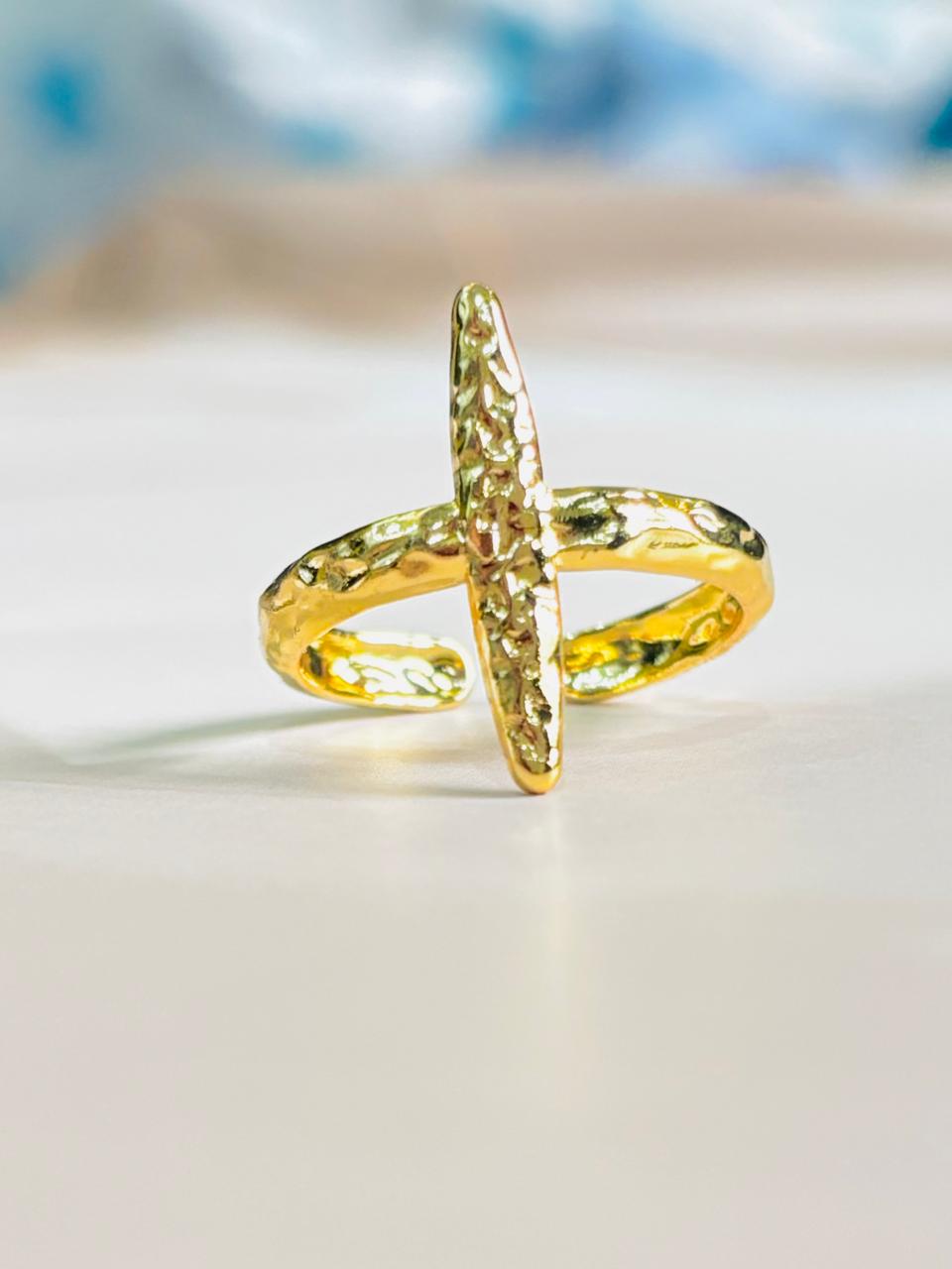Two crisscrossed hammered bars create a powerful X shape—bold, raw, and beautifully textured. A standout statement piece.
