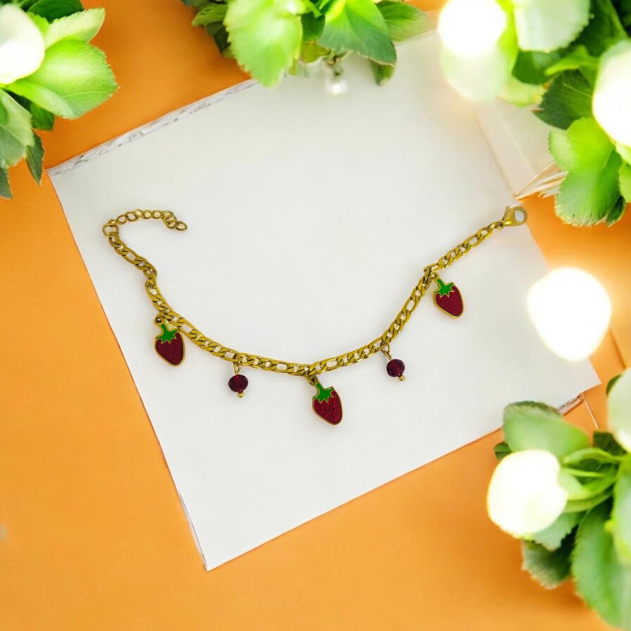 More strawberries, more the cuteness! This gold bracelet with dainty enamel charms and berry beads will instantly sweeten up your jewellery game.