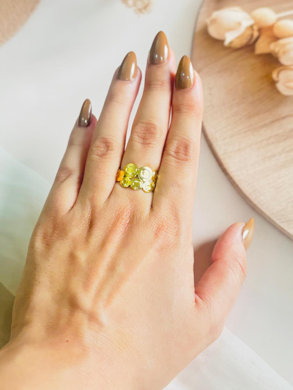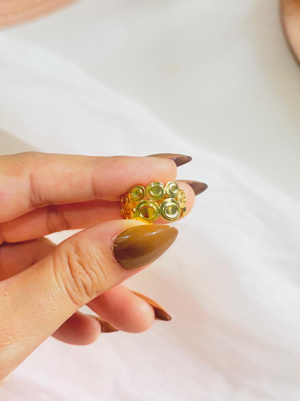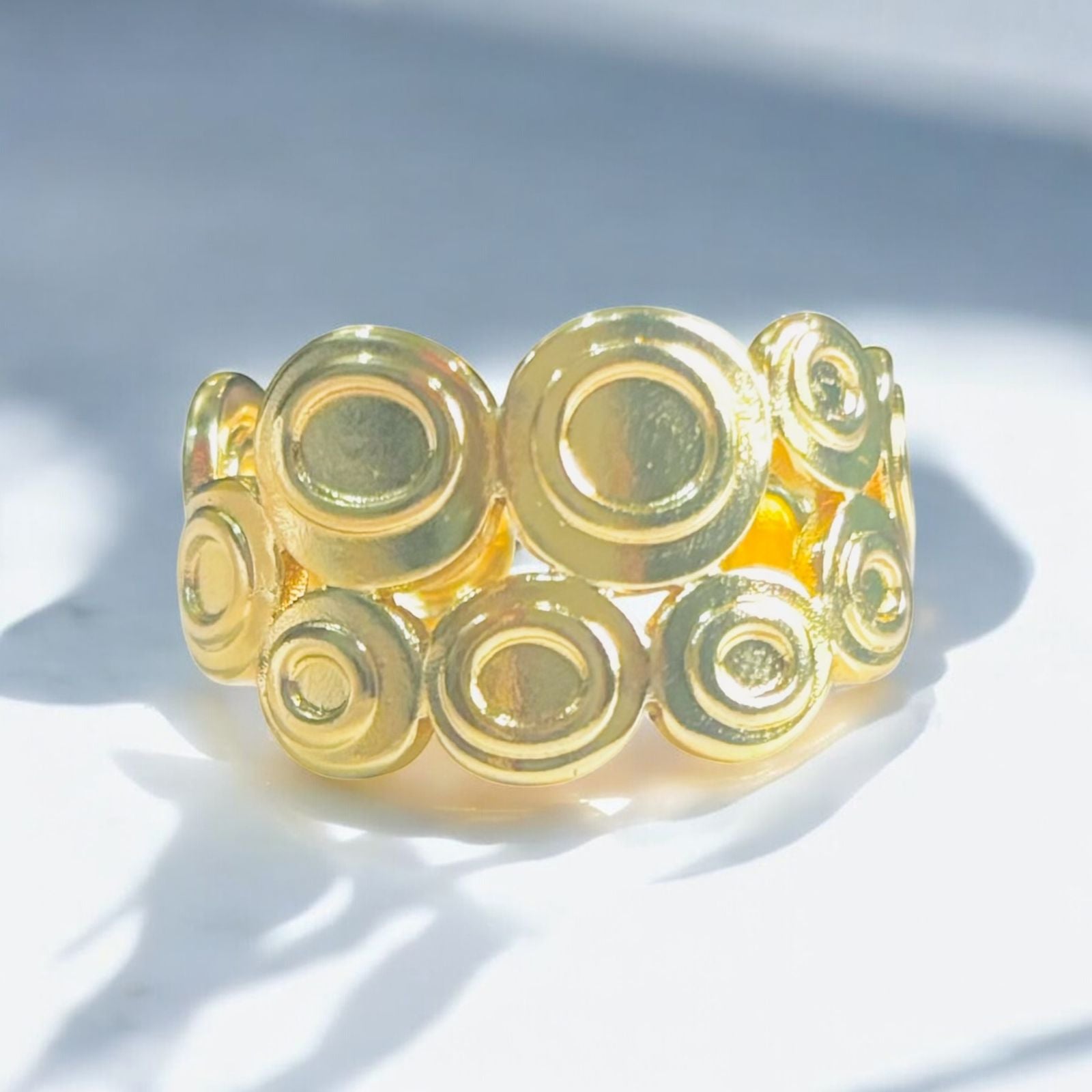 A bold, dome-shaped band with embossed bubble details for a textured, contemporary look. Ideal for statement ring lovers.