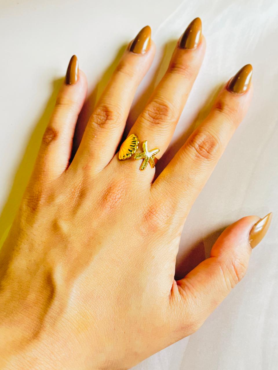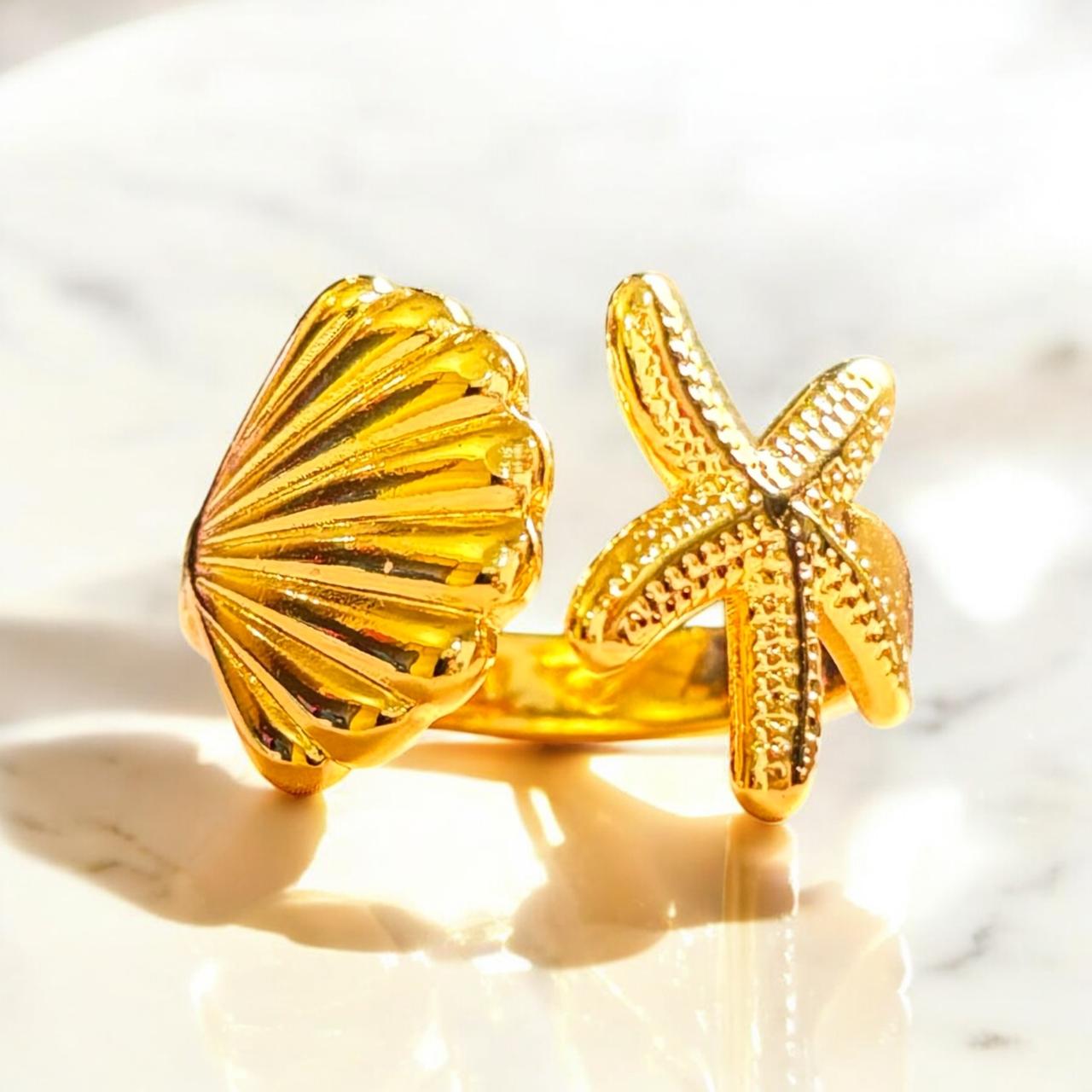 Inspired by the calm waves and soft breeze of the sea, the Golden Ocean Mist Ring brings effortless elegance to your everyday look. Its smooth, fluid design and anti-tarnish golden finish make it a versatile statement, perfect for both beach days and brunch dates.