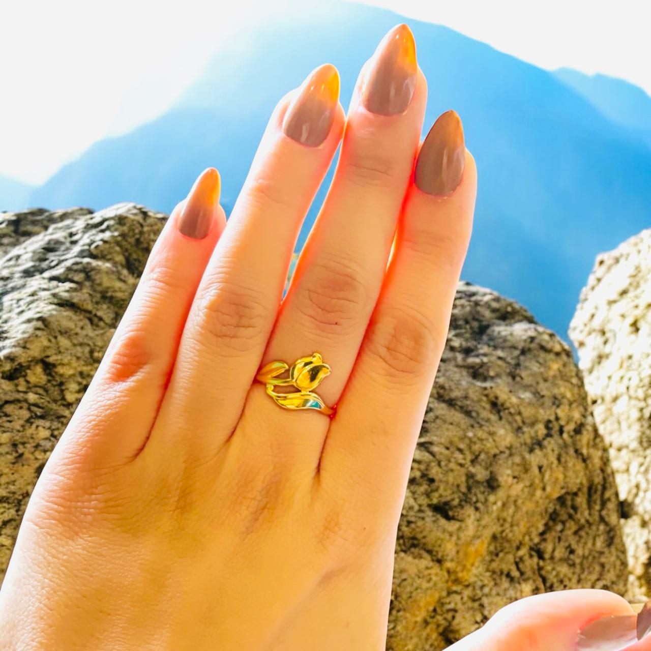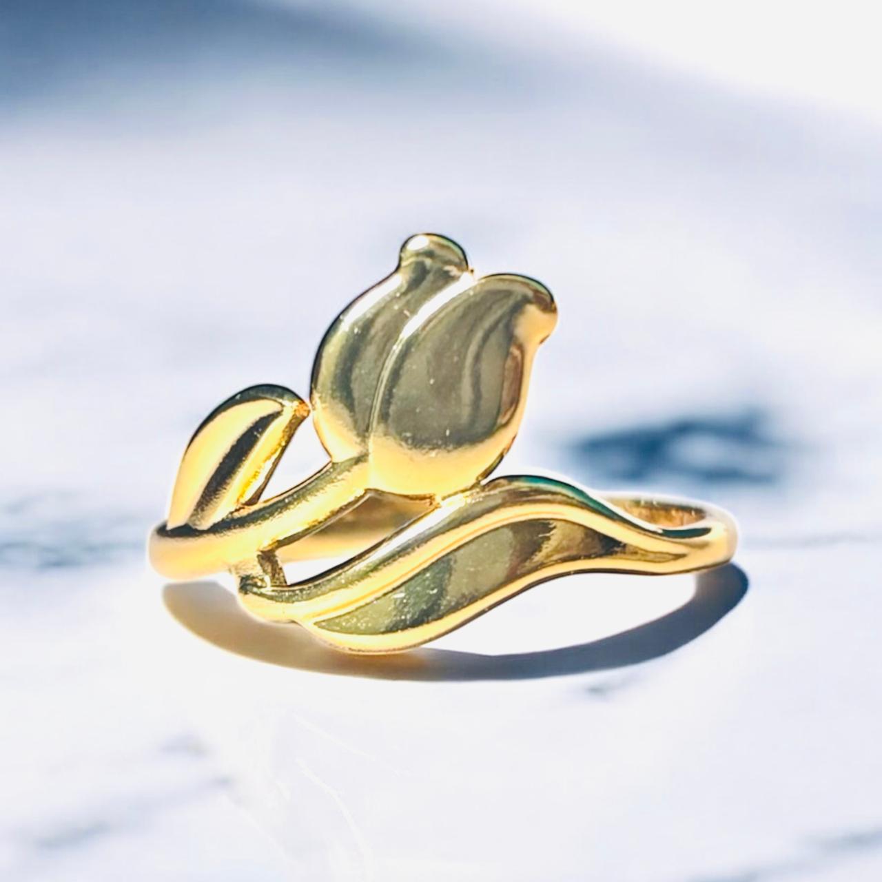 A symbol of love and timeless beauty, the Golden Rose Ring captures the elegance of a blooming rose in radiant gold. With its intricate floral detailing, anti-tarnish finish, and adjustable fit, this ring brings a soft, romantic glow to every outfit — perfect for hearts that adore delicate charm.