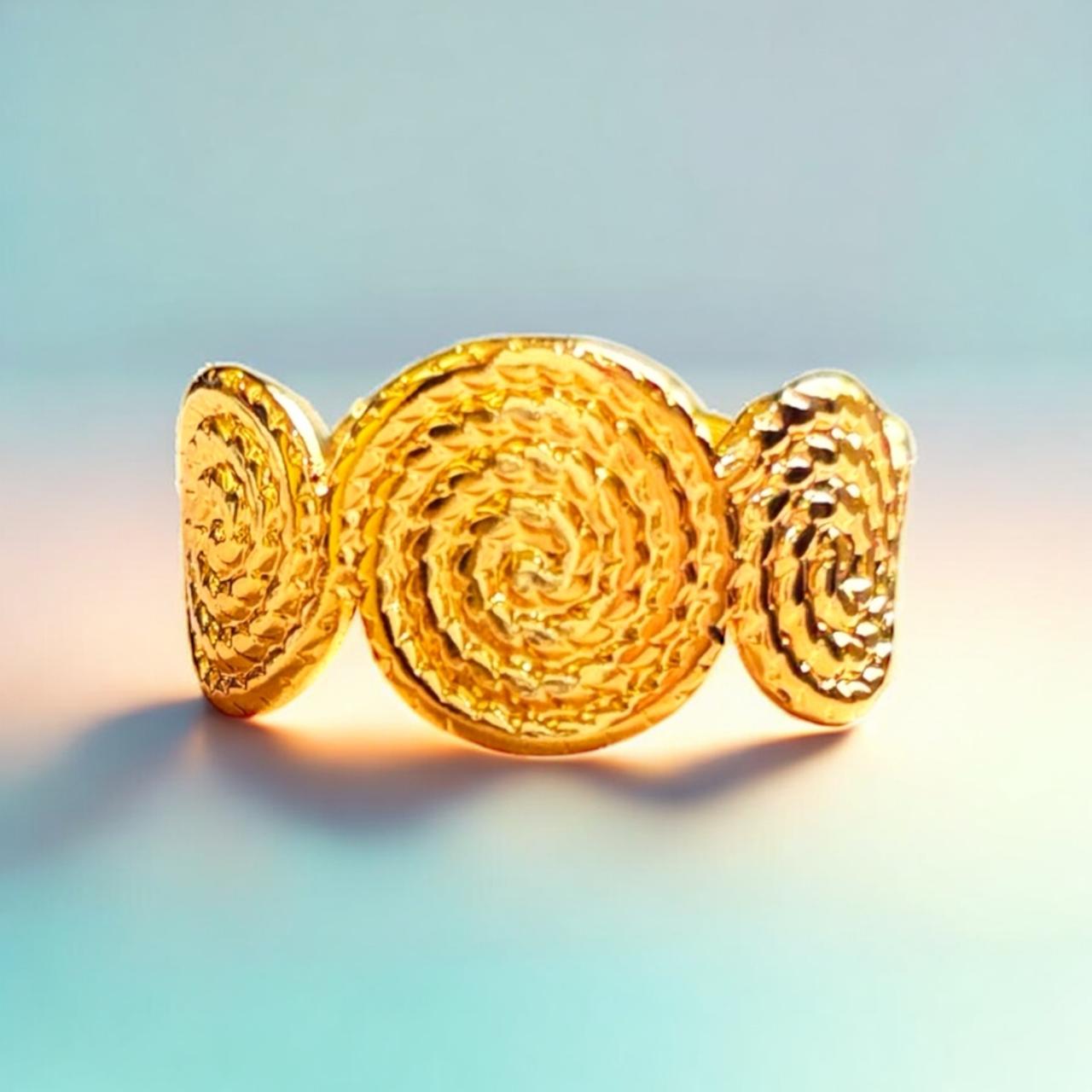 Bold in presence yet minimal in design, the Golden Muse Band is your statement of modern elegance. With its smooth curves, anti-tarnish golden finish, and comfortable adjustable fit, this ring inspires confidence and creativity — just like the muse you are.