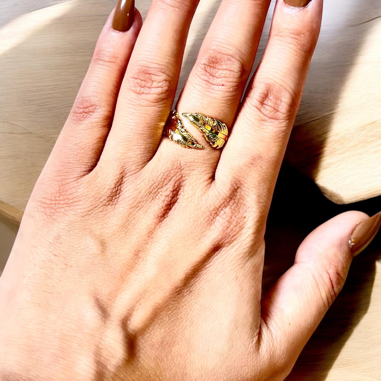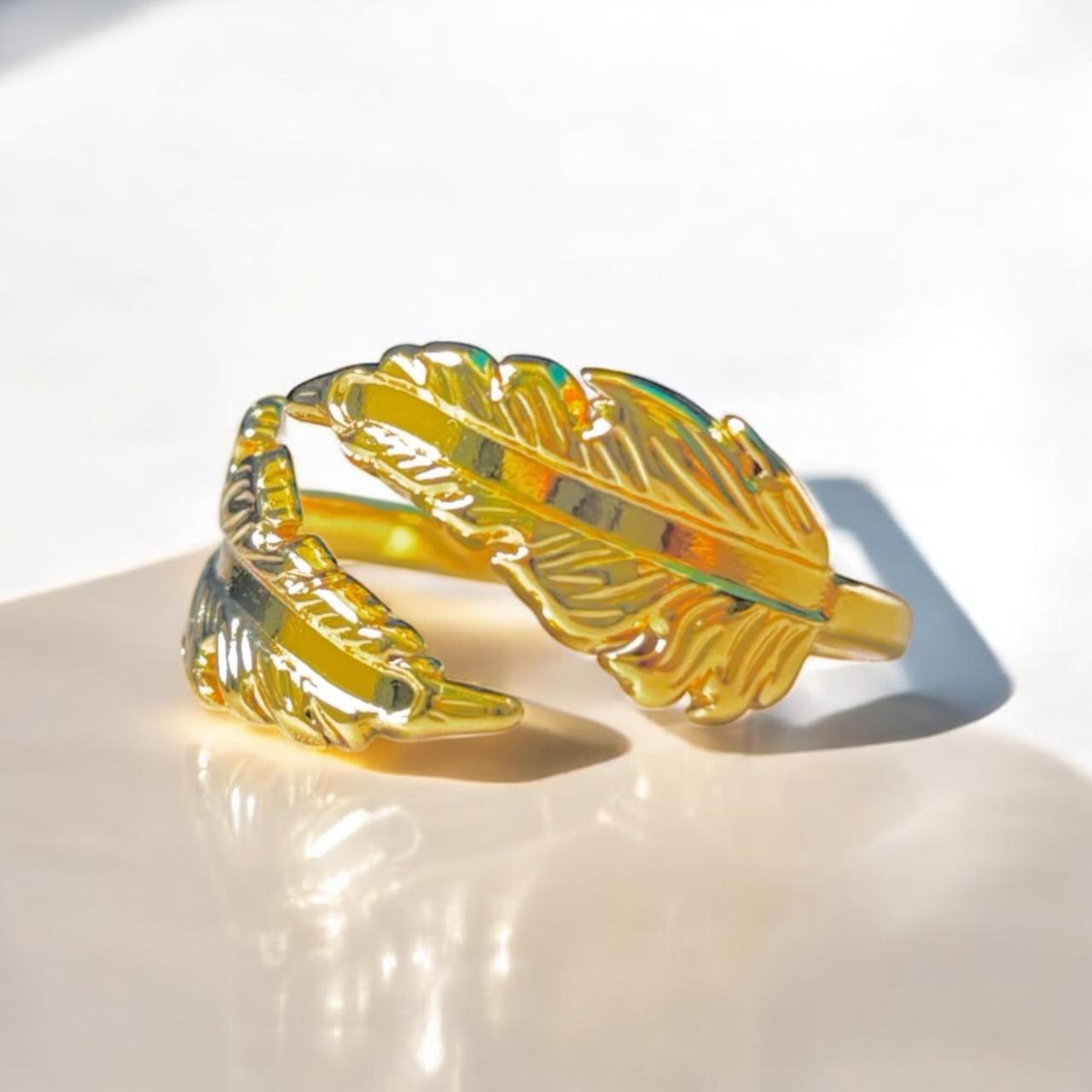 Delicate yet bold, the Golden Leaf Inspired Ring mirrors the elegance of nature with its beautifully curved leaf design. Crafted in anti-tarnish gold and fully adjustable, it's the perfect blend of organic charm and modern luxury — a statement piece for all seasons.