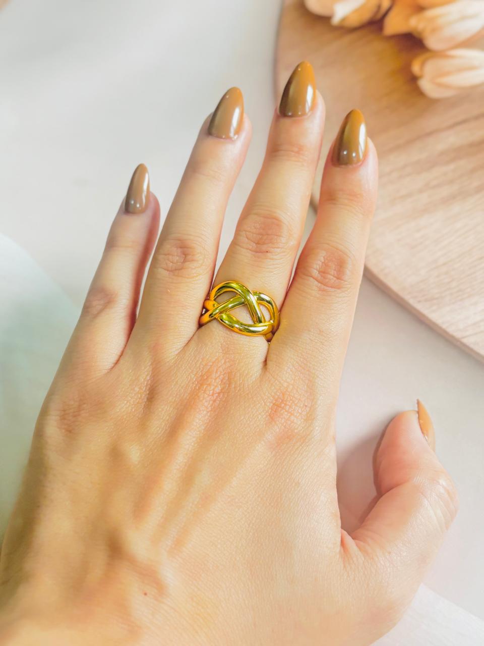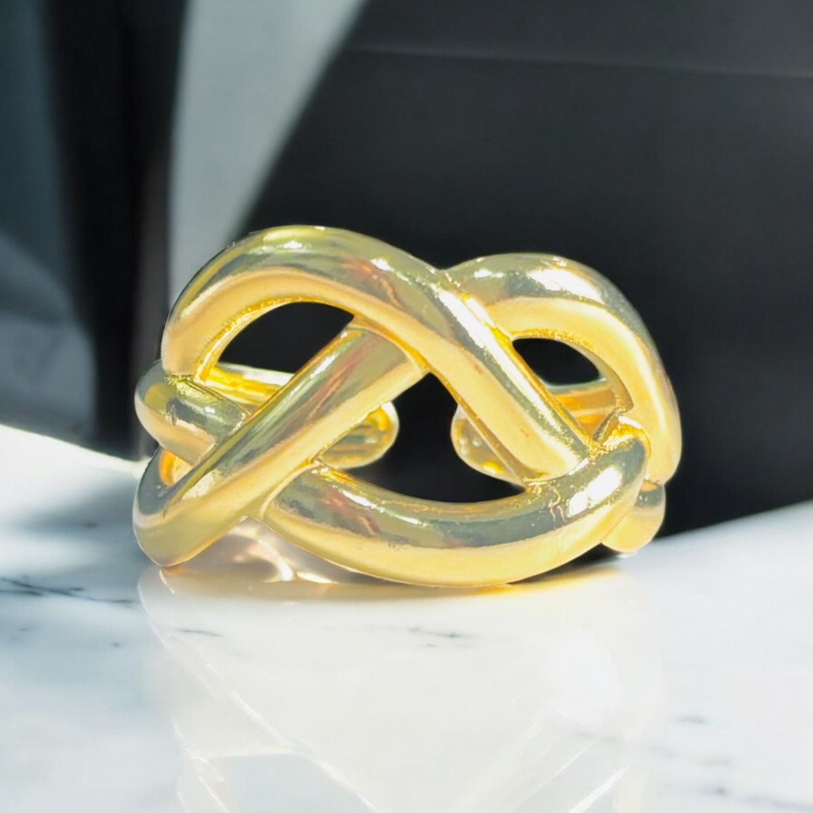 A classic intertwined knot ring symbolizing love and connection. Glossy, golden, and full of meaning—a timeless addition to your collection.