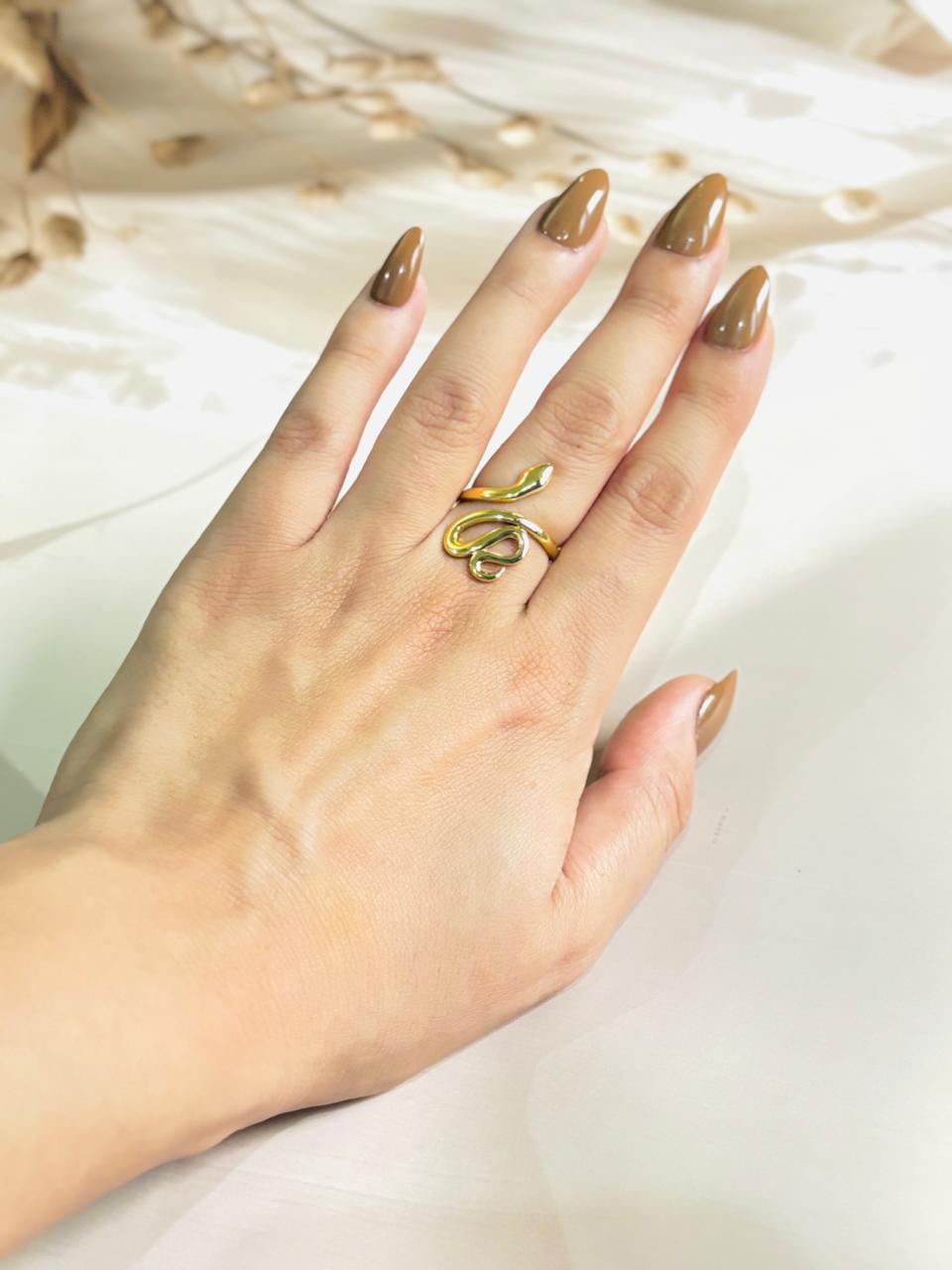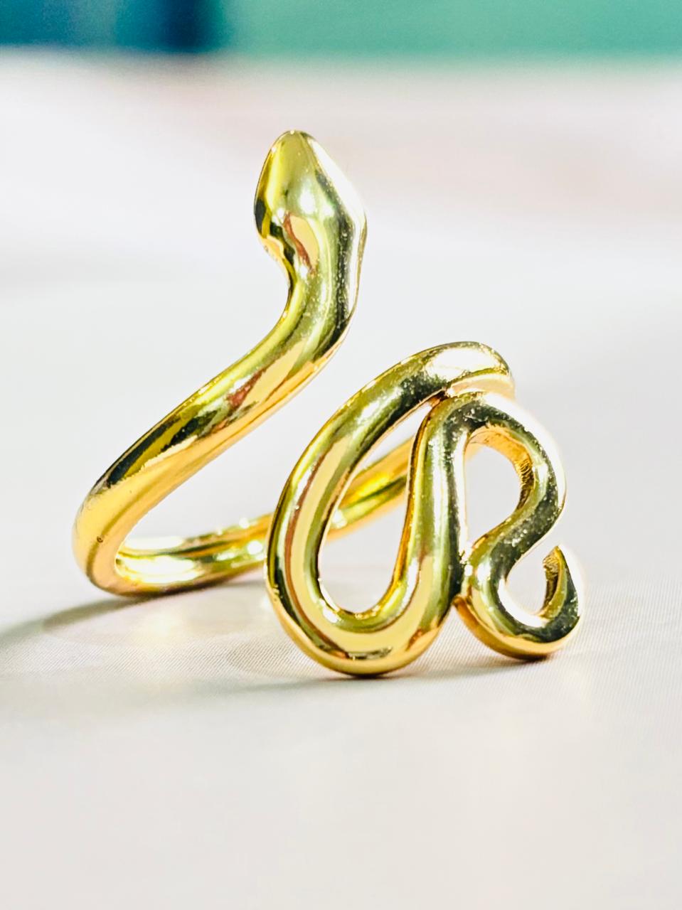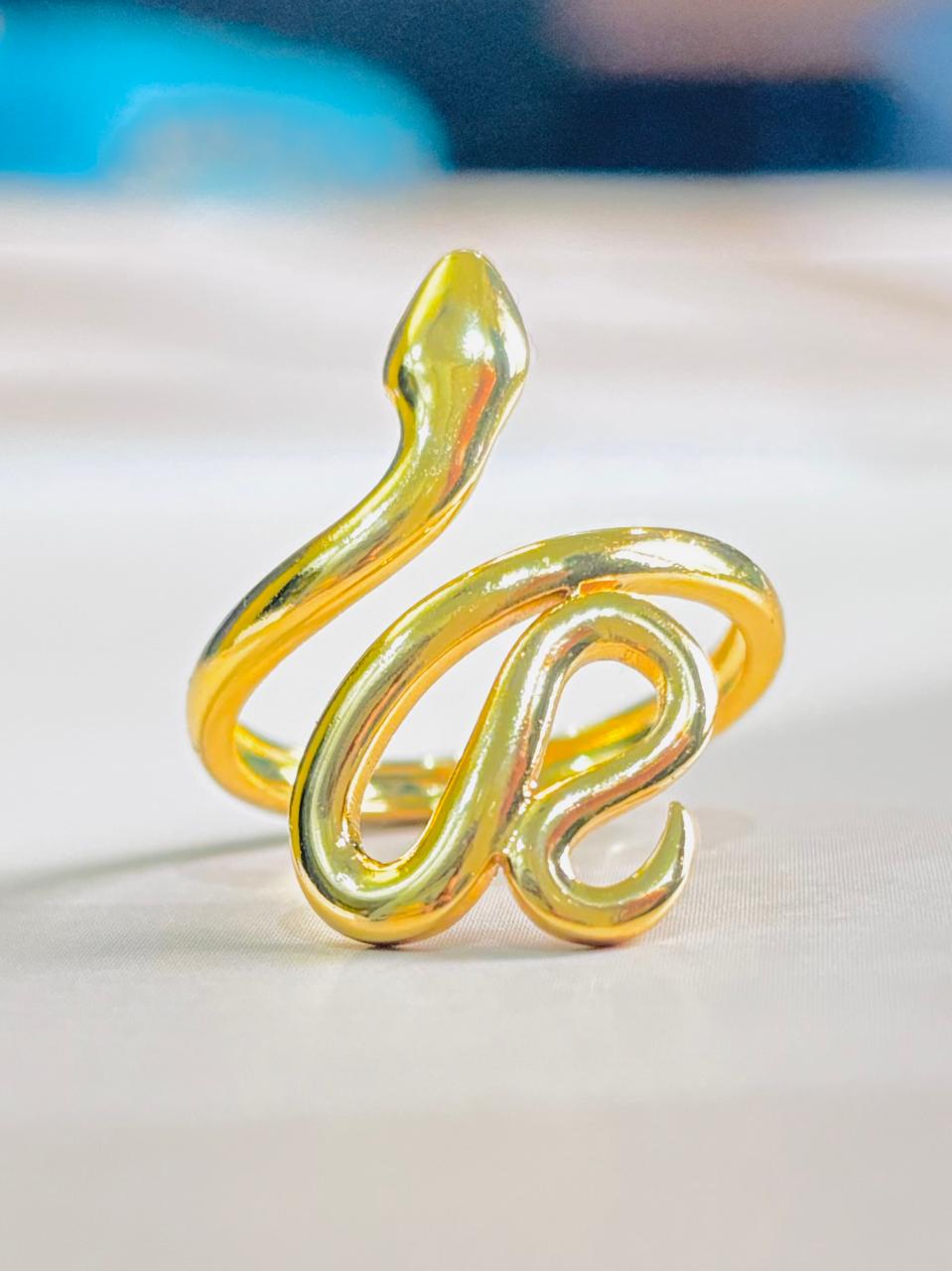 Unleash your inner goddess with the Golden Serpent Charm Ring — a symbol of strength, transformation, and allure. Its sleek, snake-like silhouette coils delicately around your finger, finished in a radiant anti-tarnish golden glow that commands attention.