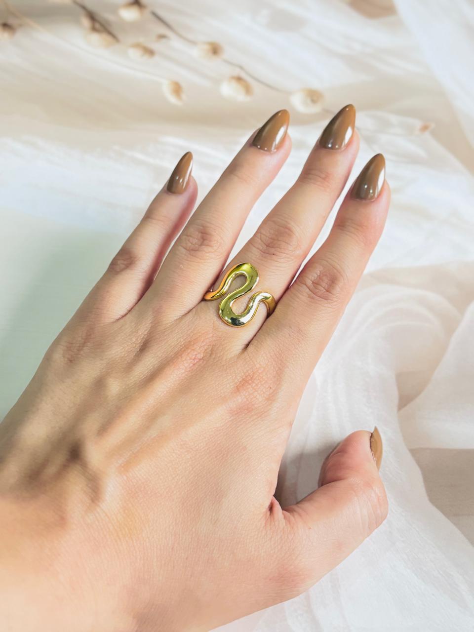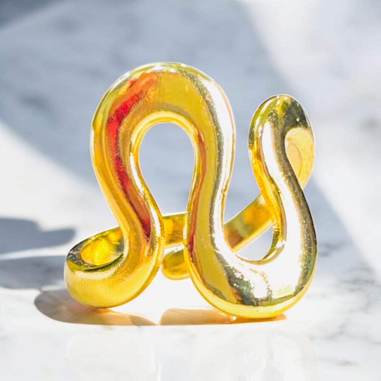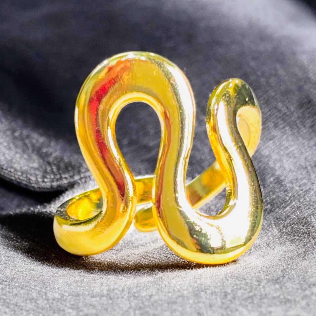 Curvy, freeform waves loop into an elegant abstract S-shape. A ring that channels boldness with grace and organic beauty.
