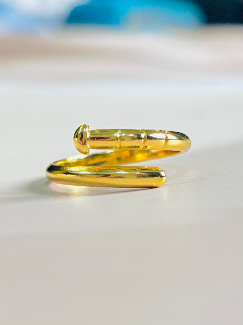 A fluid spiral band mimicking the shape of a coiled bamboo. This versatile ring brings both simplicity and edge to your look.