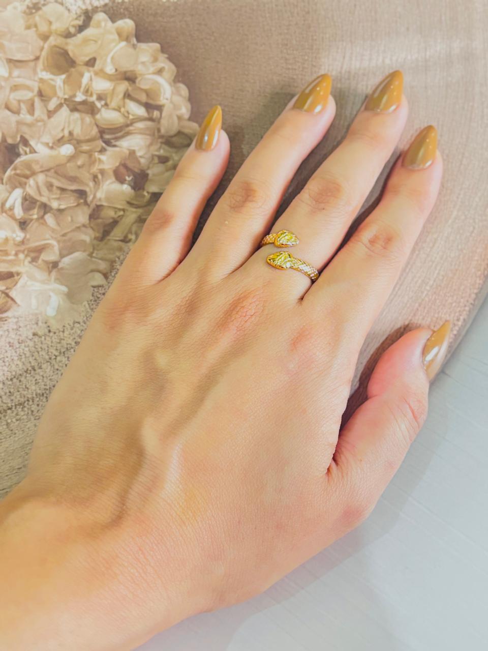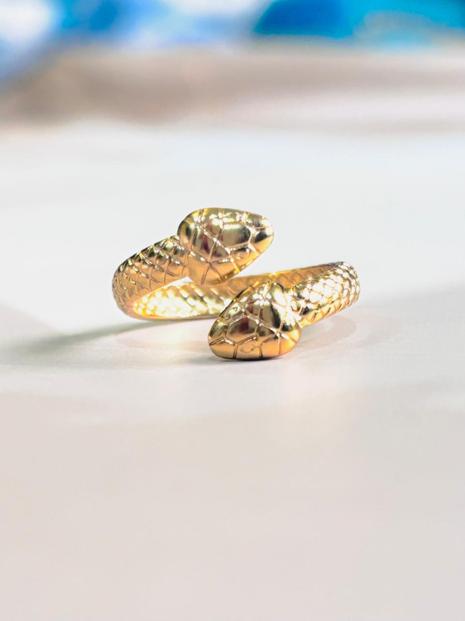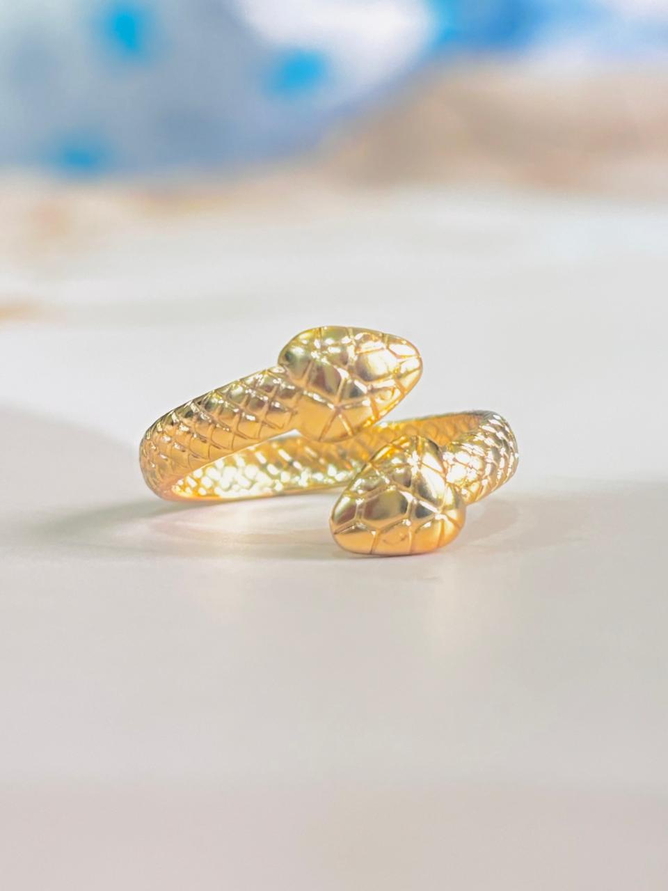Strike with style. The Golden Venom Glow Ring features a bold, serpentine design that wraps around your finger like liquid gold. Fierce yet refined, it adds a mysterious edge to your look — perfect for those who love power dressing with a touch of glam. Anti-tarnish, adjustable, and made to turn heads.