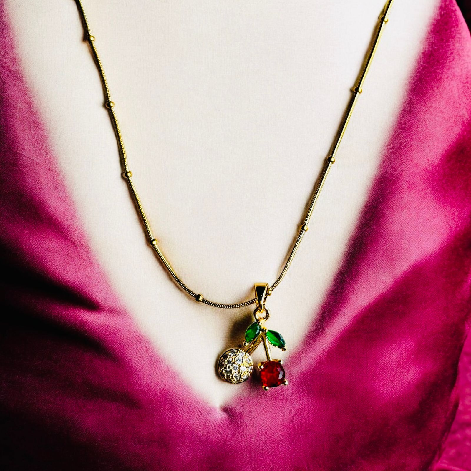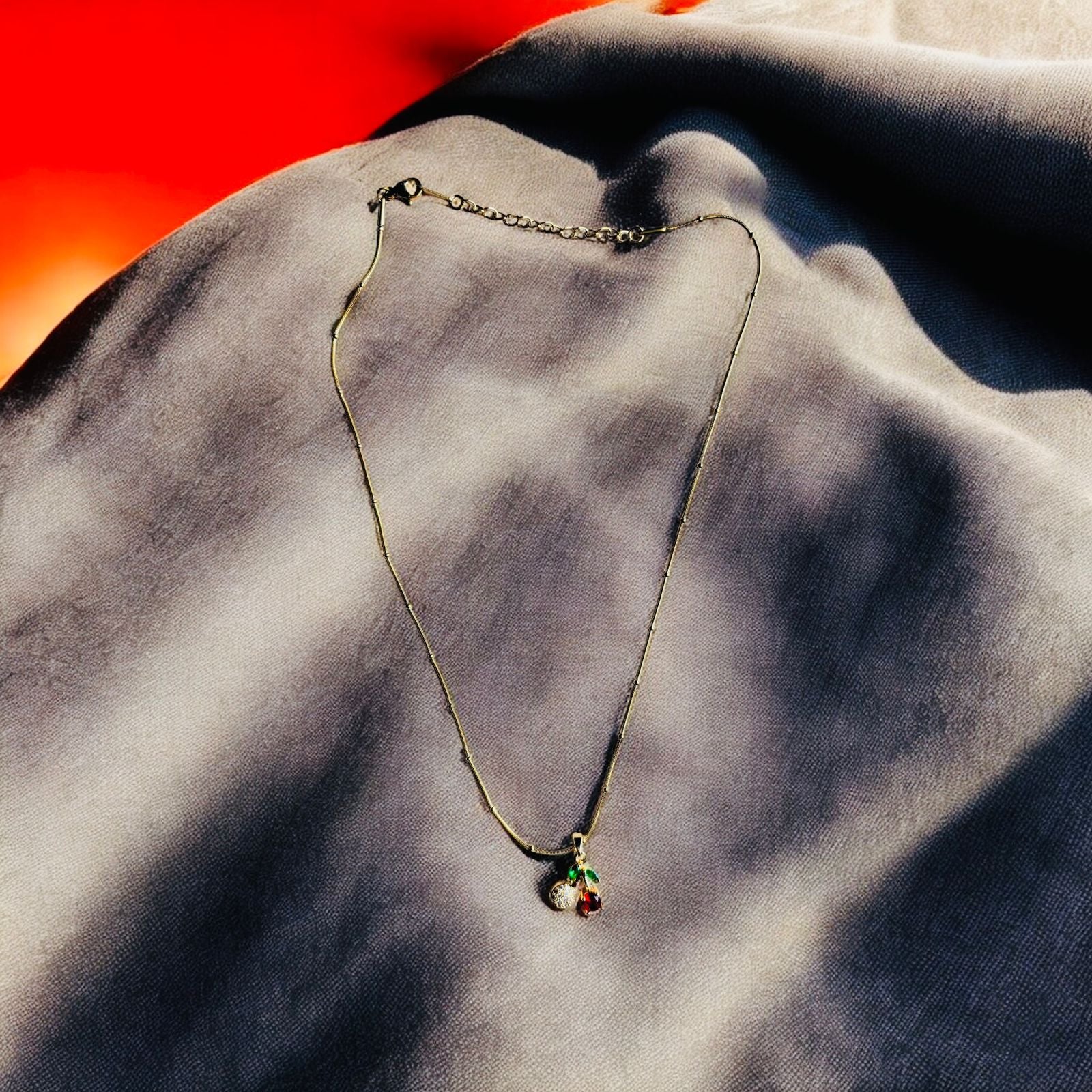 Inspired by nature’s soft transitions, the Ruby Leaf Fall Necklace blends the richness of a ruby-toned stone, the calm of a green leaf-shaped gem, and the elegance of a diamond-like drop. Delicate yet striking, this anti-tarnish, hypoallergenic piece captures beauty in every detail — perfect for festive glam or a touch of everyday luxury.