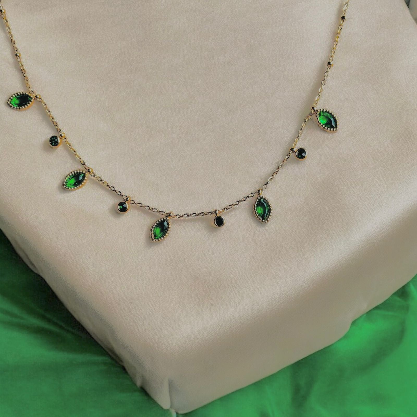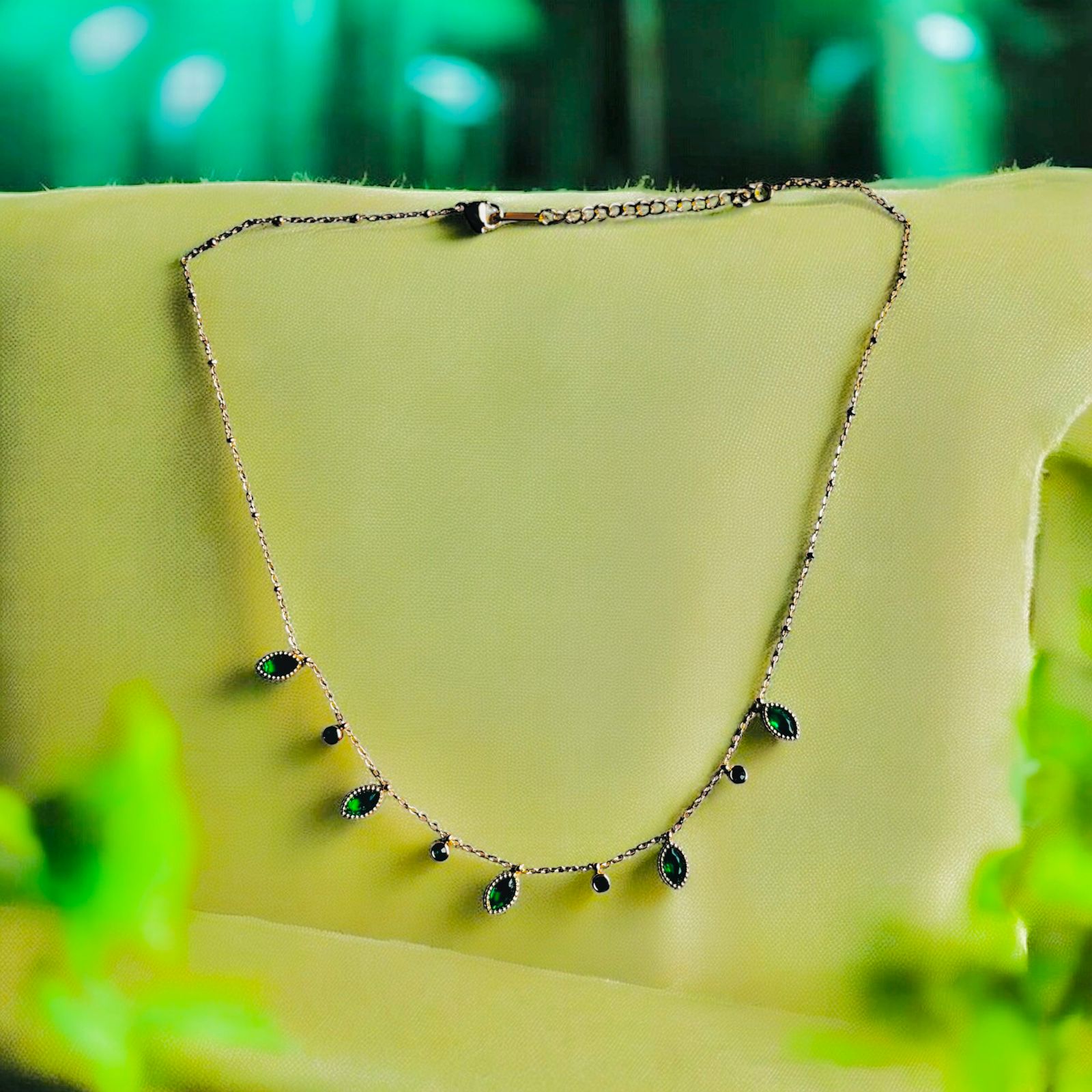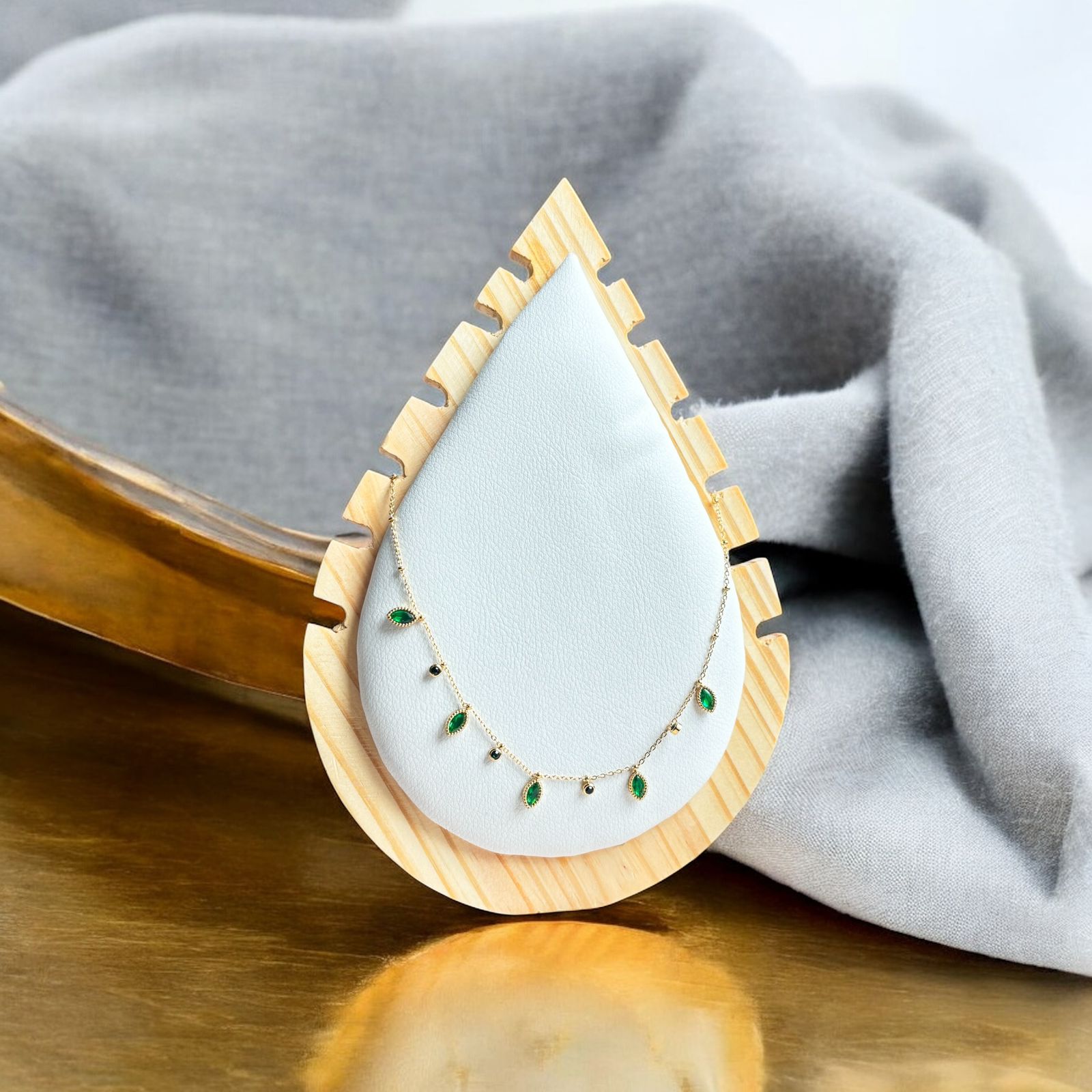 A timeless tribute to nature’s calm elegance. The Evergreen Drop Necklace features a delicate green leaf charm paired with a subtle crystal drop — capturing the freshness of morning dew and the grace of a quiet forest. Crafted to be anti-tarnish, hypoallergenic, and sweat-proof, it's your everyday reminder to stay grounded and glowing.