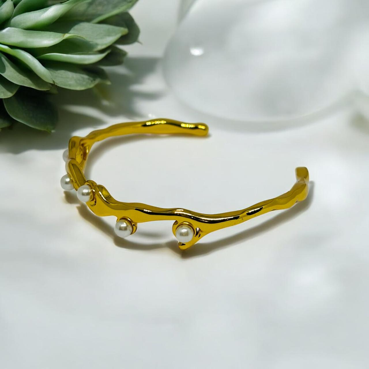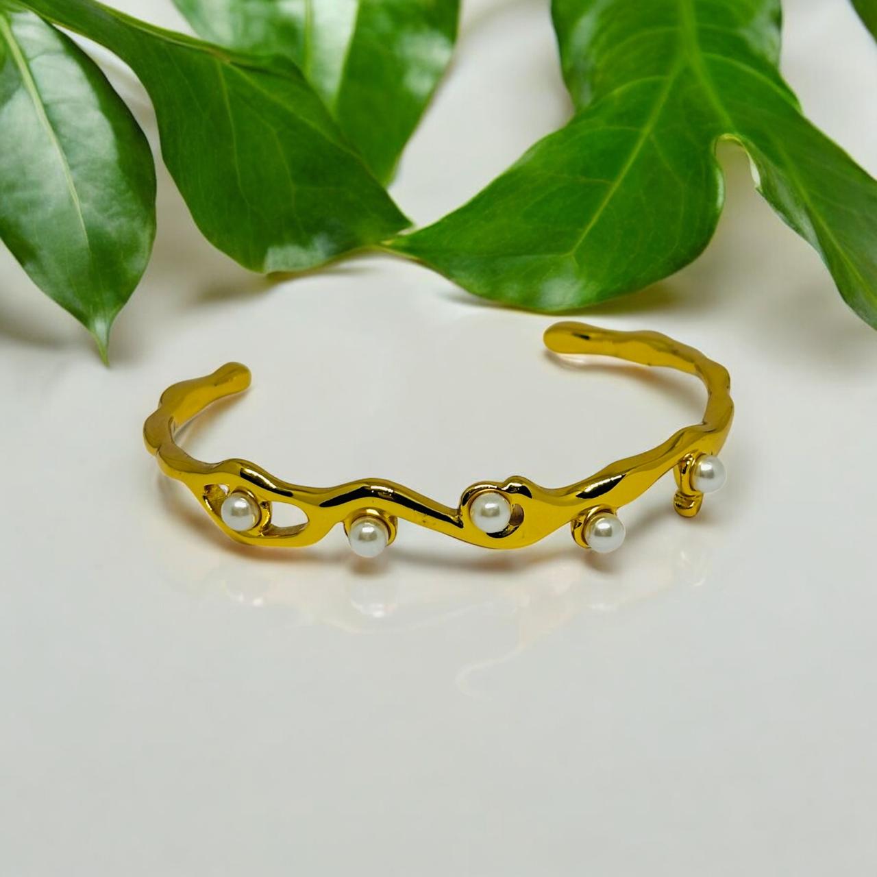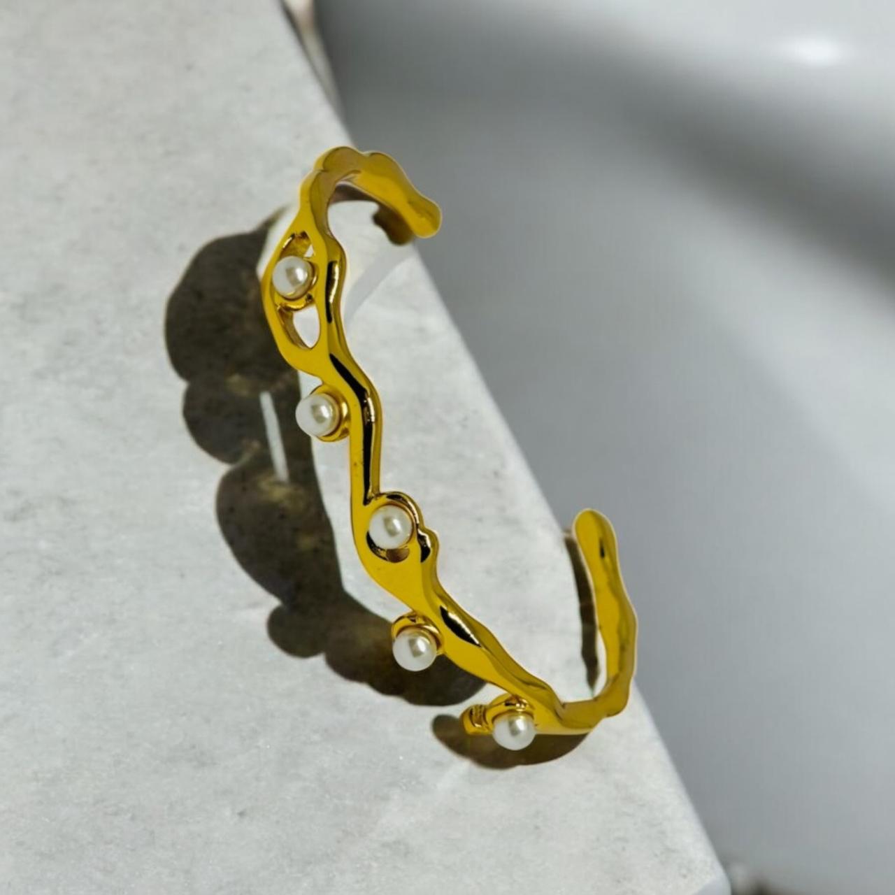 Soft curves meet classic elegance in the Wavy Pearl Open Bracelet. With its fluid wave-like structure and dainty pearl accents, this bracelet captures the essence of grace and femininity. Designed to wrap around your wrist effortlessly, it’s the perfect blend of modern minimalism and timeless charm — ideal for both casual and occasion wear.